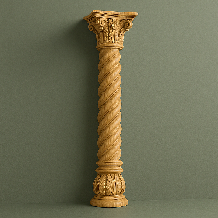 - Corinthian order — the most ornate and decorative. Corinthian capitals are adorned with stylized acanthus leaves, making them especially expressive in wooden execution. Such columns become true works of art and the focal point in any interior.