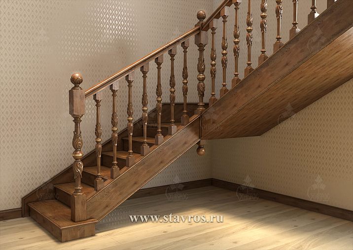 Mounting through a baluster support is a universal method allowing balusters to be installed on any base. The baluster support is a wooden strip attached to the treads and serves as a base for the balusters.