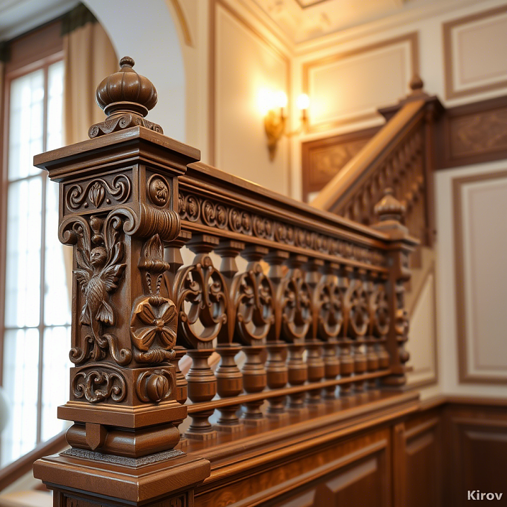 Kirov masters create balusters in various stylistic directions, from classical forms to modern interpretations of traditional motifs.