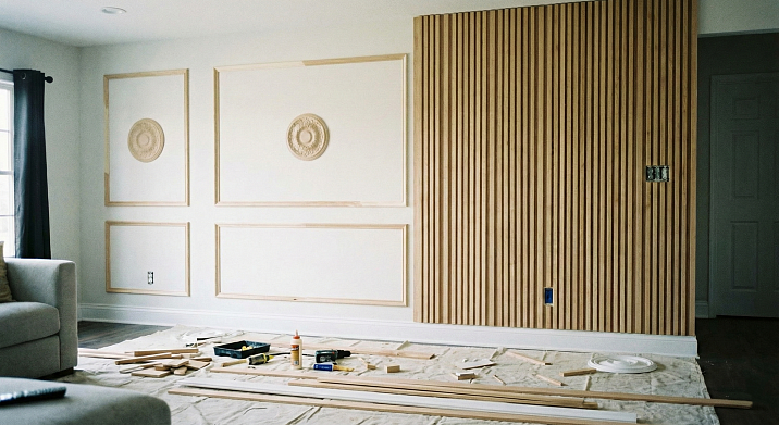 This article is a complete practical guide for those who want to create a volumetric accent wall without a designer, without a team of workers, with their own hands. We'll break it down step by step: from material selection (Buy wooden planks for decoration— which wood species, which cross-section, how many meters are needed) to final painting (how to paint wood and polyurethane so they look like a single whole). We'll consider slat layout options (vertical, horizontal, diagonal, combined), mounting methods (on a frame or directly to the wall, glue or screws), and the use of moldings for framing (width, profile, installation). We'll calculate the project cost (how much it costs to finish a 4×2.7 meter wall with slats and moldings) and the implementation time (two weekends of active work).