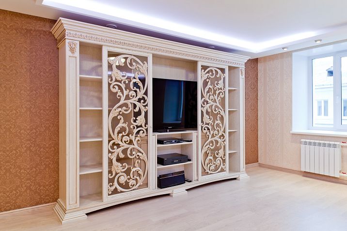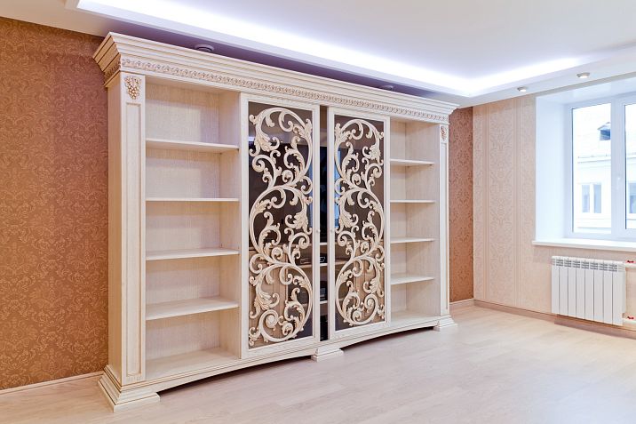 Interior harmony. Wardrobes adorned with appliqués perfectly complement classic furniture for the living room, bedroom, or even the bathroom.