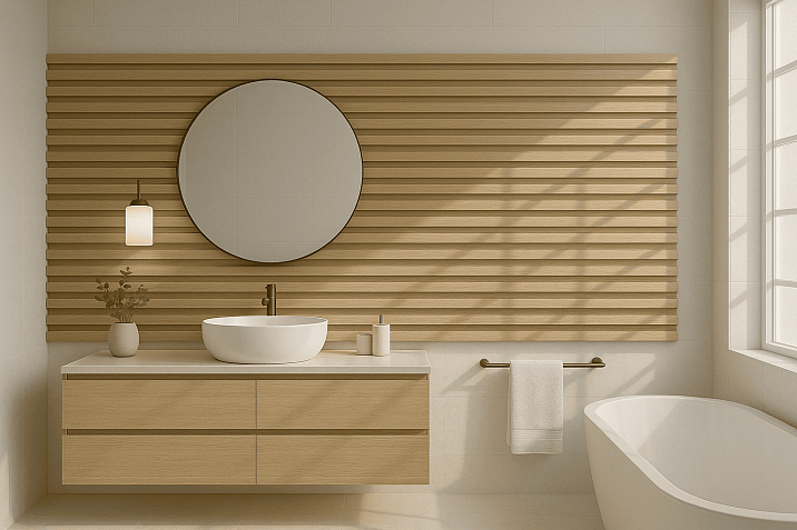 In minimalist interiors, oak texture serves as a source of warmth and coziness, softening the rigidity of geometric forms. MDF slat for interior With light oak imitation, it creates a delicate accent without disrupting the overall space concept.
