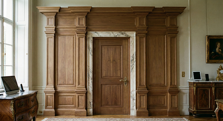 An important point — proportions. The width of the mullion should correspond to the scale of the door and the height of the room. For standard doors in rooms with ceilings 2.7–3 meters high, an optimal mullion width is 7–12 centimeters. For tall doors in grand halls, mullions can reach 15–20 centimeters.Sandrok moldingsThey form a unified system, where each element complements the other.