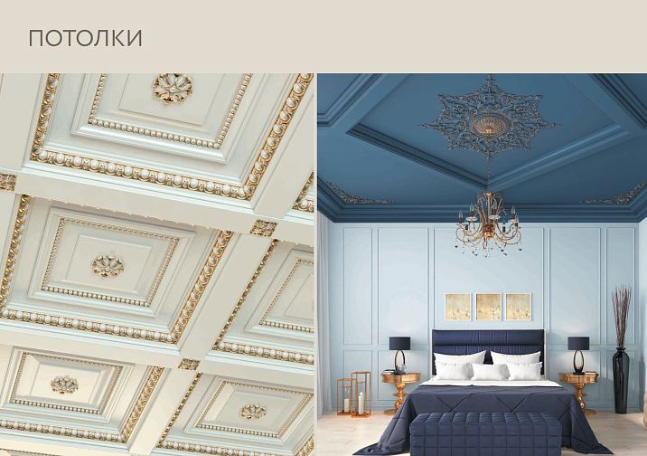 Decorative elements such asMoldings, Crown Molding and railsThese elements help create a truly stylish and functional ceiling. Choosing natural materials from STAVROS, you get quality products that will highlight the beauty of your interior and last for many years.
