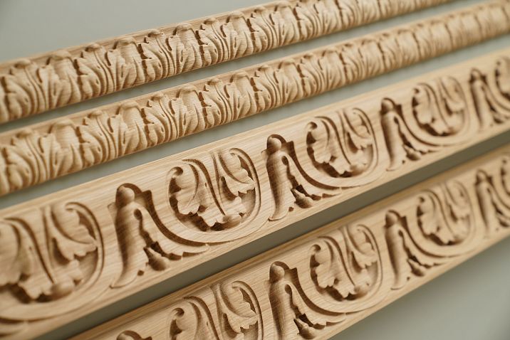 Decorative wood materials are a universal solution for interior design. They can be used for wall and ceiling cladding, creating decorative panels, moldings, and picture frames.