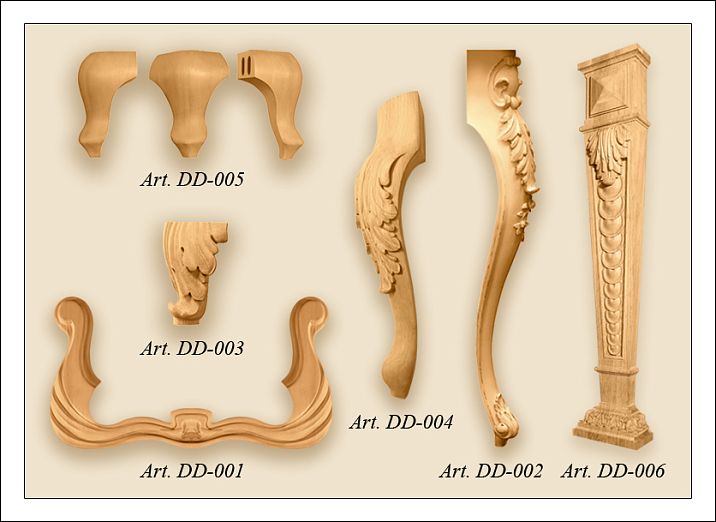 ● Decorative furniture legs for different types of tables and chairs.