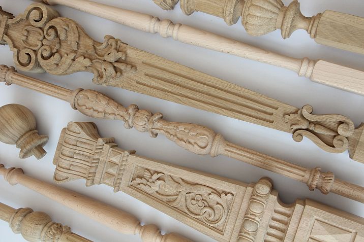 Beech is characterized by a uniform fine-pored structure, making it an ideal material for creating balusters with complex carved elements. Its neutral color serves as an excellent base for any type of decorative finish — from natural oils to bright paints.