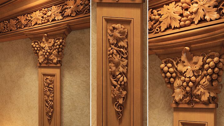 Doorway decoration. Carved elements will emphasize the lines of the doorway, making it a true focal point of the room.