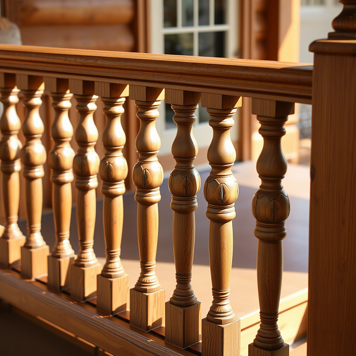 Larch holds a special place among coniferous species due to its unique properties. High resin content provides natural protection against moisture, fungi, and insects. Larch balusters are suitable for both indoor and outdoor use. The beautiful golden-brown tone and expressive texture make larch a popular choice for country homes.