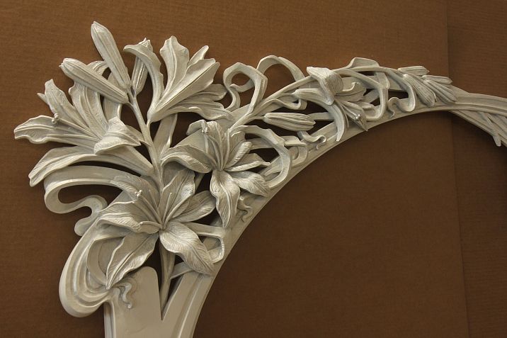 Modernism opens up new creative opportunities. Smooth lines, plant motifs, symbolic imagery — all of this is reflected in reliefs of this style. Especially popular are images of irises, lilies, female figures in flowing garments.