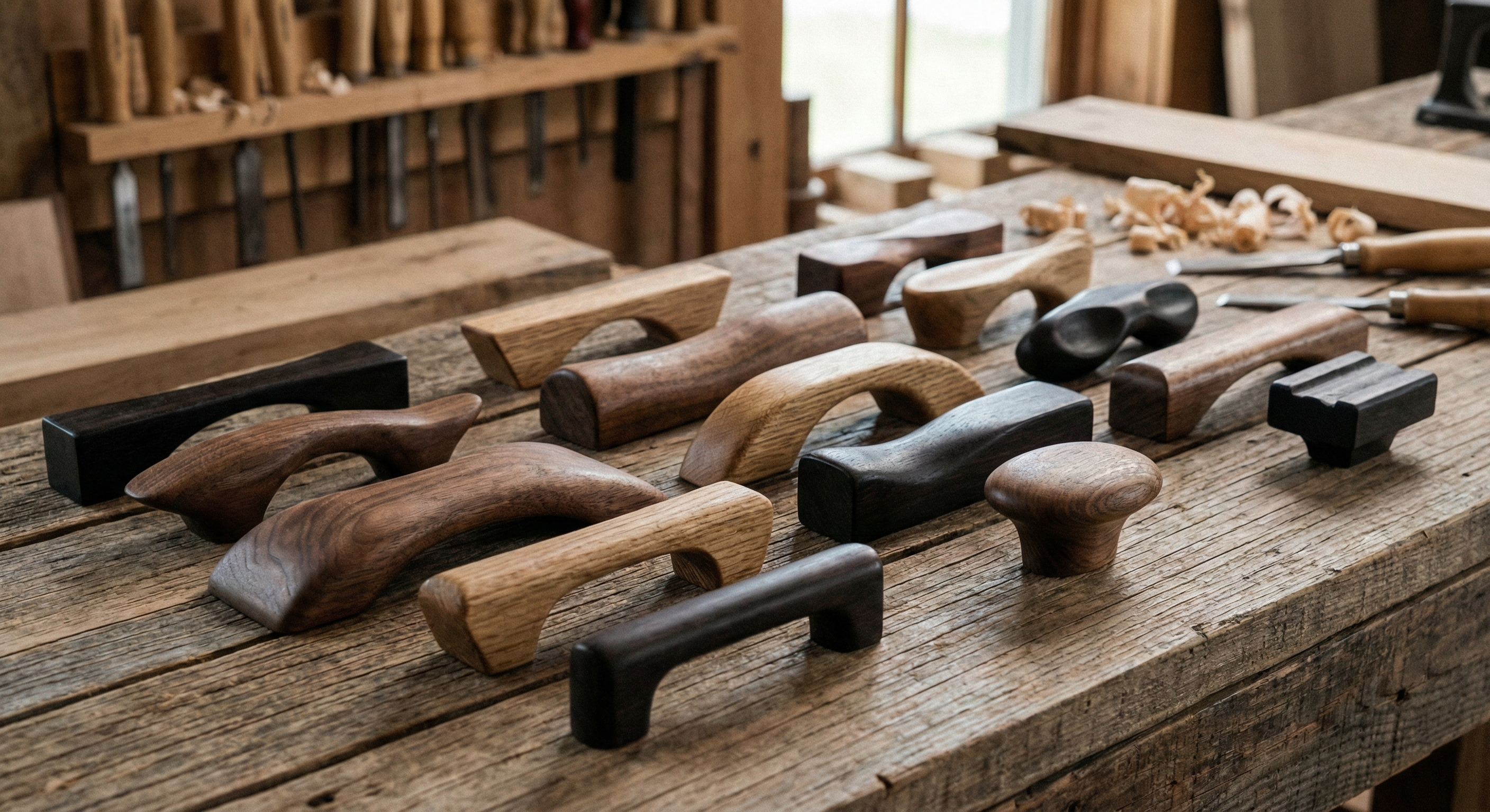 Первый и главный критерий — материал. Премиальные ручки изготавливаются исключительно из цельного массива благородных пород. Никаких композитов, шпона, имитаций. Только дуб, бук, ясень, орех — древесина с плотностью не менее 600 кг/м³, прошедшая камерную сушку до влажности 8-10%.