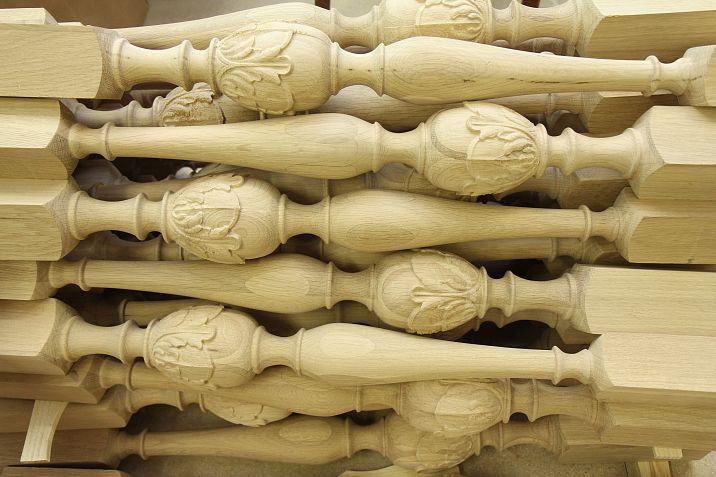 Твердые лиственные породы — дуб, бук, ясень — премиальный выбор для ответственных элементов. Плотность 600-800 кг/м³ и высокая твердость обеспечивают исключительную износостойкость. Выразительная текстура делает их идеальными для элементов без покраски.