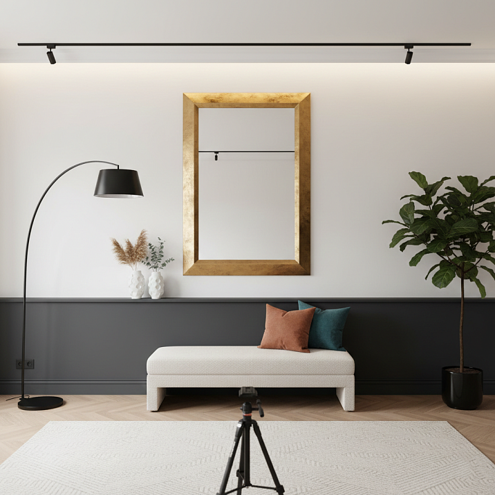 That is precisely why the placement ofa large wall mirror in a frame— is not an intuitive process, but a calculation. You need to stand at the shooting point, look through the viewfinder (or at the smartphone screen), assess what will be captured in the reflection. And only then hang the mirror.