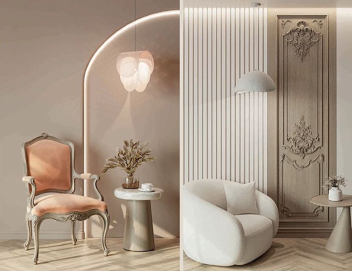 Interior elements, such as decorative panels, rails, mirrors, and overlays, become key accents that set the overall tone. At this stage, it is important to consider: