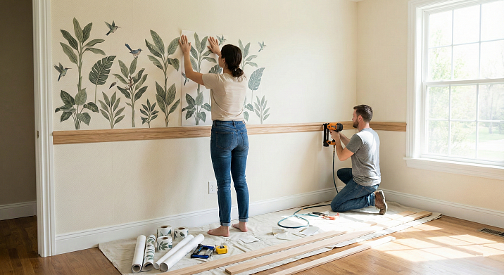 Theory without practice is dead. Let's break down how to implement the idea of wall decor using decals combined with wooden moldings, from the first sketch to the final touch.