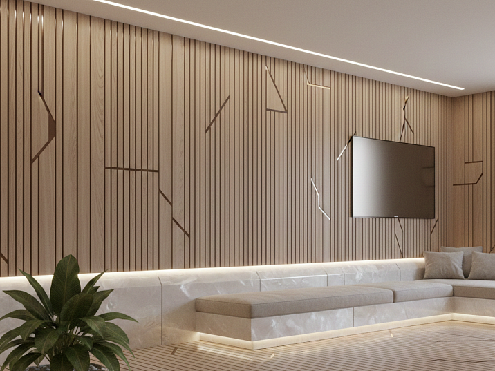 Room proportions influence the orientation of slats. A long, narrow room—vertical slats on short walls visually expand the space. A square room—slats on one accent wall, the others smooth.