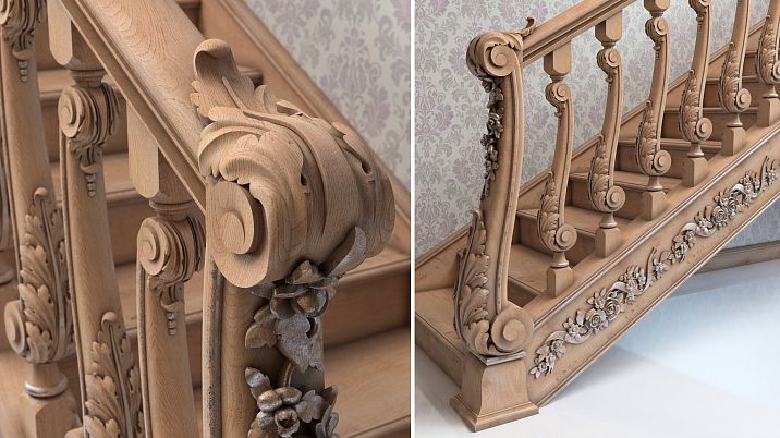 Oak is an elite wood species characterized by beautiful texture, exceptional strength, and longevity. Oak balusters can serve for centuries, retaining their original appearance. They withstand high humidity and temperature fluctuations well. The only drawback is their high cost, but it is fully justified by the quality and longevity of the products.