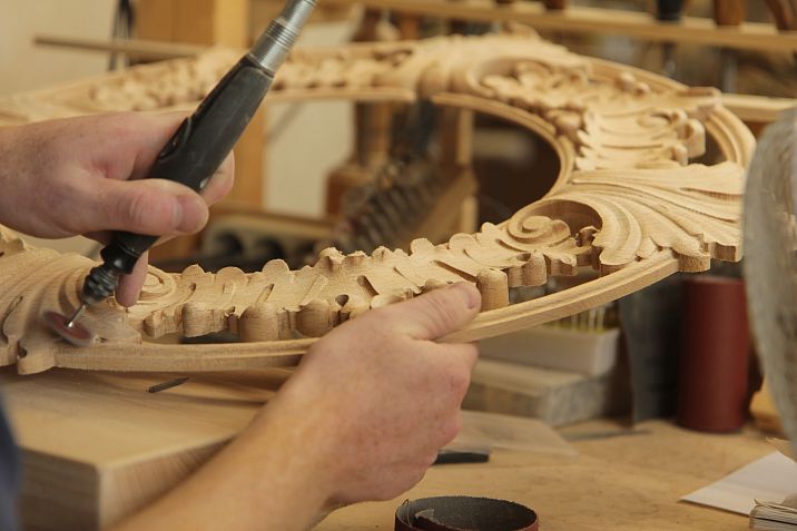 Manufacturing begins with careful selection of material. Each blank is checked for compliance with project requirements: moisture content, density, absence of defects. An experienced craftsman can "read" wood, understand its character, and use its natural properties to enhance decorative effects.