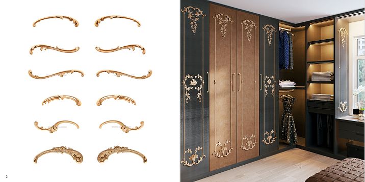 Patina creates an effect of noble aging. Special compositions are applied to relief surfaces and partially removed, leaving characteristic traces of time in recesses. Patina can imitate various metals — gold, silver, copper, bronze.