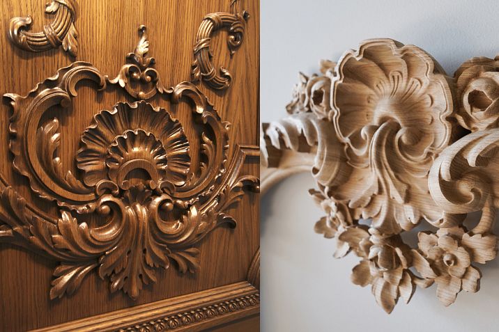 At this stage, both traditional crafts and modern technologies are employed. Hand-carving, laser cutting, CNC processing, and digital modeling allow you to create decorative elements with maximum precision. Each detail, from moldings and baseboards to appliqués and outlets, is manufactured according to all technical requirements and design ideas.