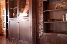 Установите резные накладки на фасады дверей шкафа. Они подчеркнут стиль интерьера, добавив мебели изысканности.