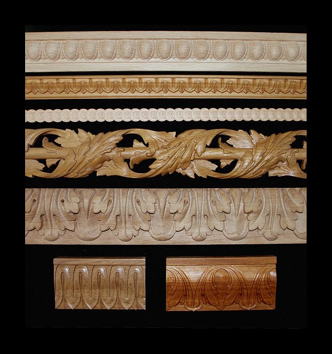 Classic carved moldings with refined ornamentation, suitable for elegant interiors.