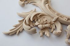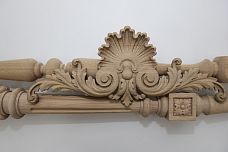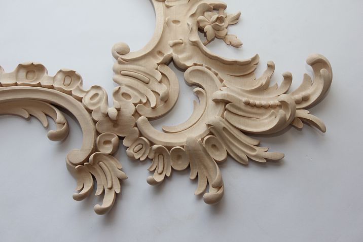 Decorative solid wood items: carved wooden appliqués, moldings, trim, furniture handles, legs, cornices, grilles, and other items.