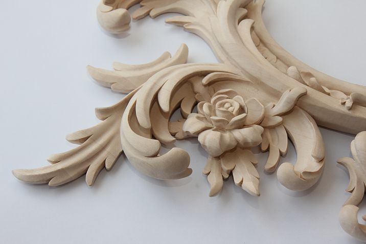 Decorative panels and appliqués. Carved panels are used to decorate walls, doors, window openings, and building facades. They can be made with various patterns and ornaments, from classical to modern. Decorative appliqués transform ordinary surfaces into works of art, creating a unique style and accents in the interior.decorative elements emphasize refinement and style.
