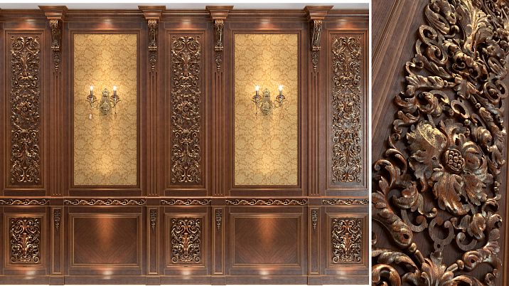 Aesthetic Variety. Panels can be made of solid wood, enhanced with carving, lacquering, or special coatings that highlight their texture. This allows you to create unique interiors reflecting the owner's taste.