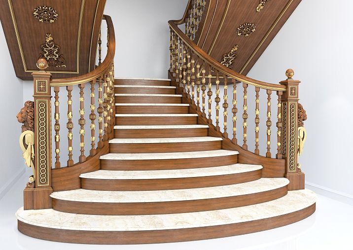 In a classic interior, the staircase often becomes a central decorative element. Here, preference is given to items with rich finishes, carved elements, and traditional forms.
