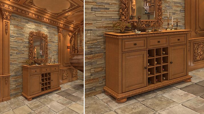 Combining handcrafting and modern technologies allows creating carved molding that is a true work of art. The artisan, using traditional tools, adds individuality to each carved element, making the chest of drawers truly unique.