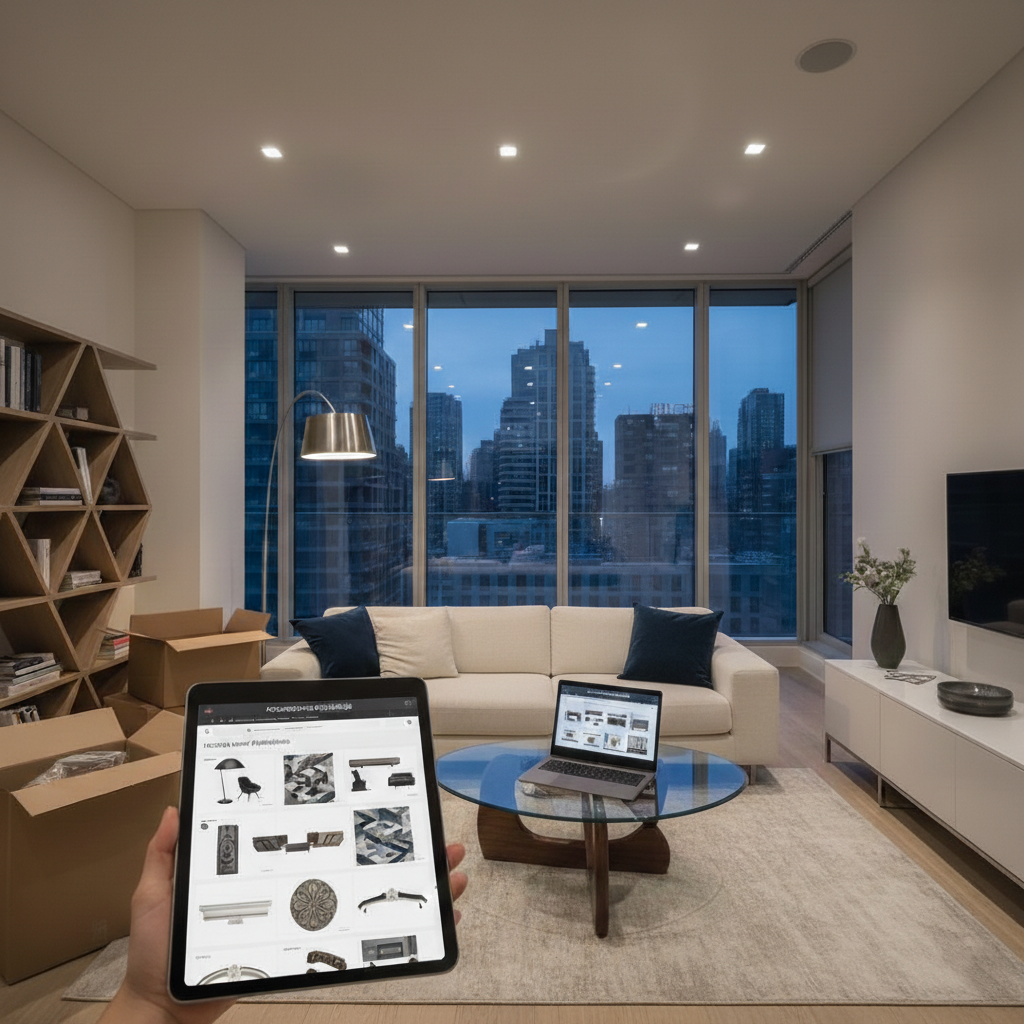 Traditional interior design scenario: went to a construction hypermarket for molding (selected cornices, moldings, rosettes, spent 2-3 hours choosing and consulting, loaded into the car), the next day went to a furniture showroom for a sofa (viewed ten models, chose one, placed an order, spent another 2-3 hours), a week later went to another store for a shelving unit (the first one didn't have a suitable one), another day later to a baseboard store. Total: four trips, 8-12 hours of time, several hundred rubles on gas, nerves in traffic.