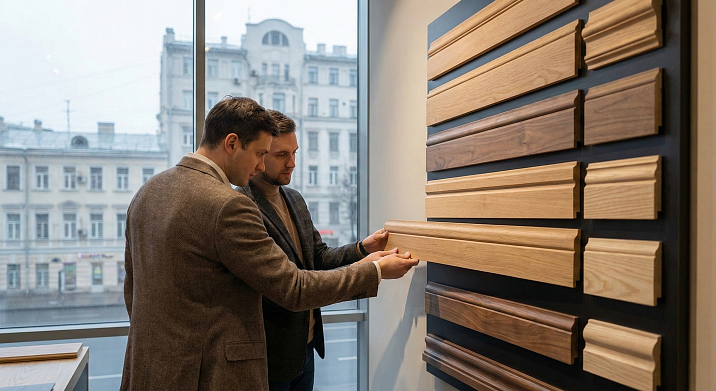 This article is a detailed guide for those looking for wooden skirting boards in Moscow or St. Petersburg. Where to view samples in person, feel the texture, compare profiles? What wood species are available and how do they differ? How much does a linear meter of oak skirting cost and what determines the price? How is delivery organized and what to do if installation is needed? All answers — without fluff and advertising clichés, only practical information for decision-making.