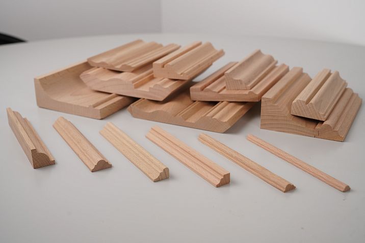 Деревянные рейки широко применяются при изготовлении декоративных элементов отделки: молдингов, карнизов и плинтусов. Эти элементы не только скрывают технологические швы и обеспечивают завершенность композиции, но и добавляют интерьеру изысканности, подчеркивая высокий уровень мастерства производства.