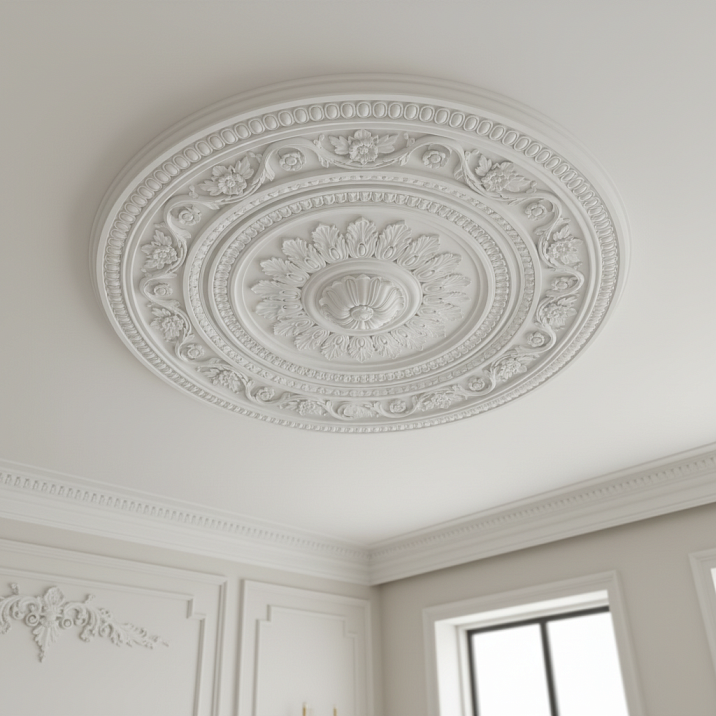 Polyurethane is absolutely moisture-resistant. It does not absorb water, does not swell, does not rot, does not develop mold. For the Saint Petersburg climate, this is critically important. Even if the room humidity is 80-85% (which occurs in bathrooms, kitchens, first floors of old buildings), polyurethane stucco retains its shape and properties.