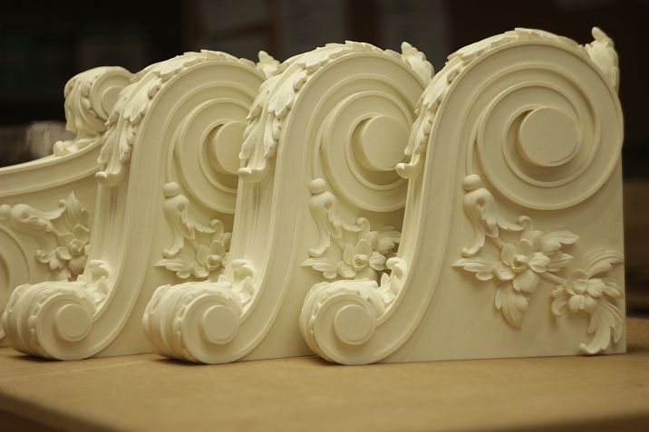 Gypsum is a porous material that requires careful care. Protect it from moisture and mechanical damage, and reapply paint or protective coating as needed. - Polyurethane elements.