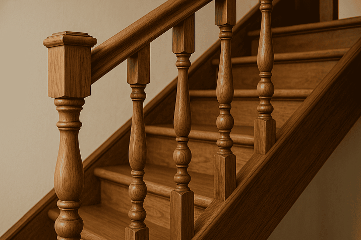 Когда мы говорим о классических лестницах, воображение сразу рисует величественные интерьеры с точеными балясинами, создающими ритмичную композицию. Классические деревянные балясины отличаются строгими пропорциями, основанными на математических соотношениях золотого сечения. Каждый элемент — от основания до капители — выполняет свою функцию в общей гармонии.