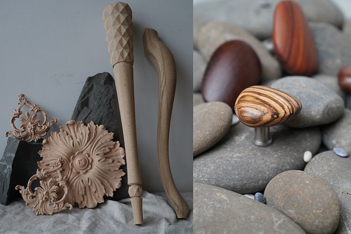 - Ассортимент. Компания предлагает многообразие деревянных заготовок, массивных деталей, фурнитуры (включая мебельные ручки) и иных комплектующих, необходимых для производства мебели.