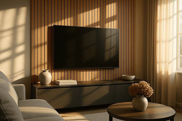 Contrasting solutions — dark slats on light walls or vice versa — look especially striking. Such compositions create a strong visual accent and can serve as a backdrop for contemporary art or designer furniture.
