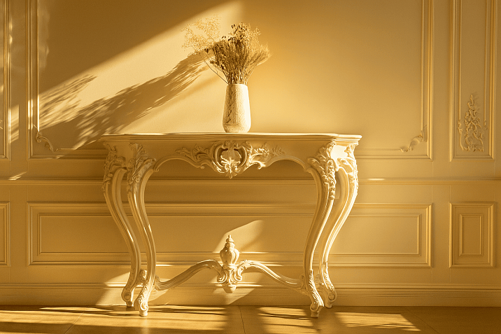 Итальянская мебель барокко — это апофеоз декоративного искусства. Здесь каждый элемент призван поражать воображение: золоченая резьба, инкрустация ценными породами дерева, обивка из роскошных тканей.
