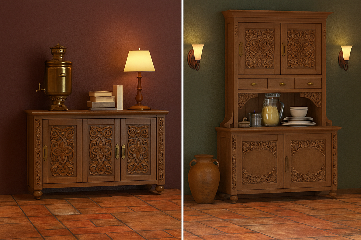 When you decide buy furniture made of solid wood in Russian style, you get not just a functional item, but a carrier of cultural code. Carved ornaments, characteristic proportions, noble patina — all this creates an irreplaceable atmosphere that cannot be reproduced with mass-produced furniture.