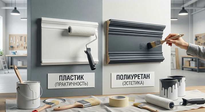 Plastic (usually polystyrene) is cheaper, simpler, suitable for budget projects. Polyurethane is stronger, has a more defined relief, longer-lasting, and more versatile with paints.Plastic molding to be painted— for economy,Polyurethane molding— for quality.