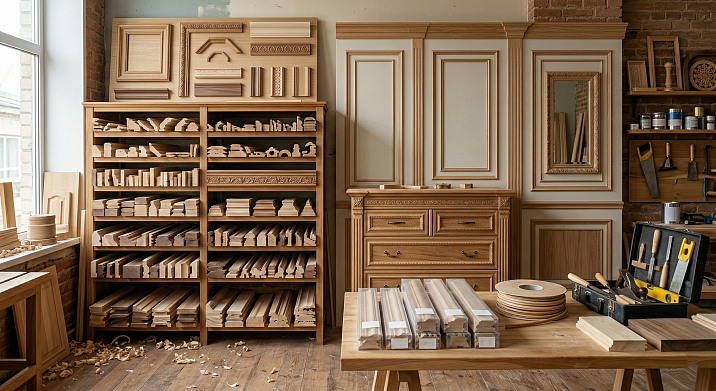 Wooden molding— is a profiled lineal strip made of solid oak, beech, or MDF. It seems like a modest element. But it is precisely this that distinguishes handmade furniture from conveyor production, and a professional interior from a random collection of items. In this article — a complete breakdown: what furniture molding is, what types exist, how to attach it to fronts and walls, why wooden is better than polyurethane, and how to correctly choose the finishing treatment.