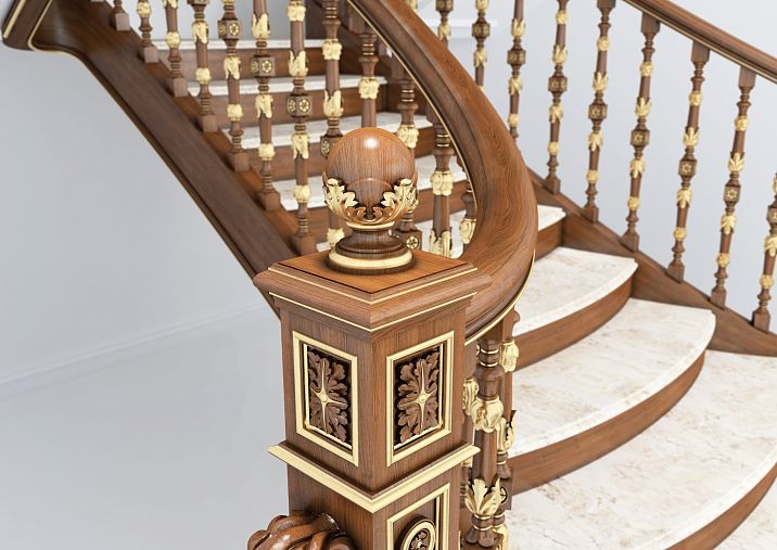 and newel posts. This approach allows creating a harmonious ensemble in which each element performs its role, complementing and emphasizing the overall interior style.balusters for staircases, staircase handrails and balustrades. This approach allows creating a harmonious ensemble in which each element fulfills its role, complementing and emphasizing the overall interior style.