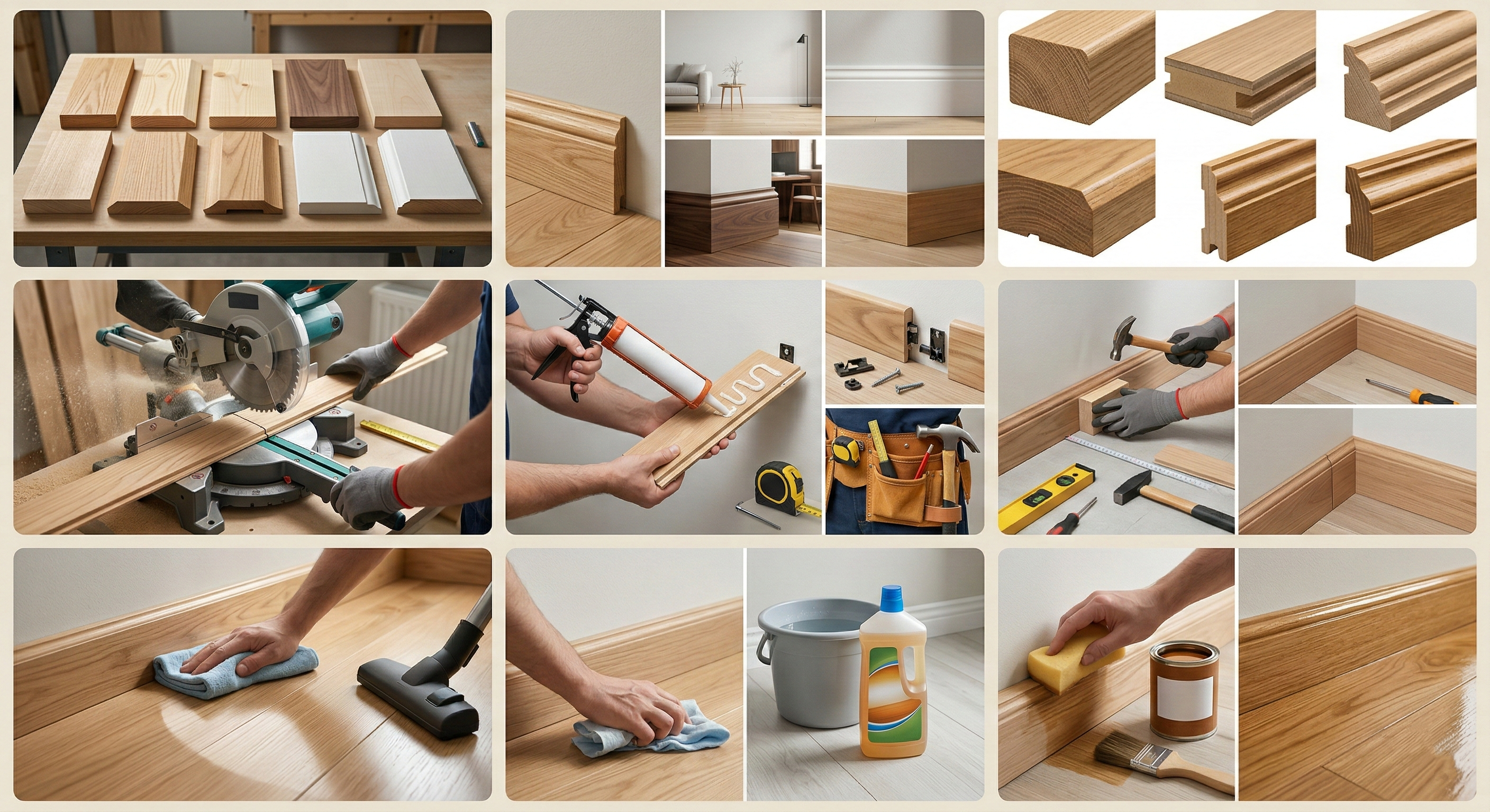 - Installation of Wooden Skirting Board: Tools, Fasteners, Sequence
