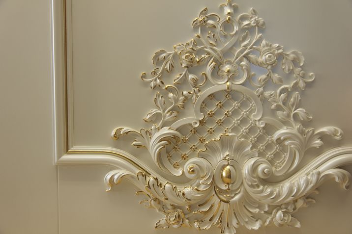 Gypsum is a material that pairs beautifully with traditional interiors in classical and baroque styles, as well as with modern minimalist solutions. It works excellently both as ceiling moldings and as decorative wall panels. One of the advantages of gypsum is its naturalness and eco-friendliness, as it is a natural material. Moreover, gypsum provides good sound and thermal insulation, making it an excellent choice for living spaces.