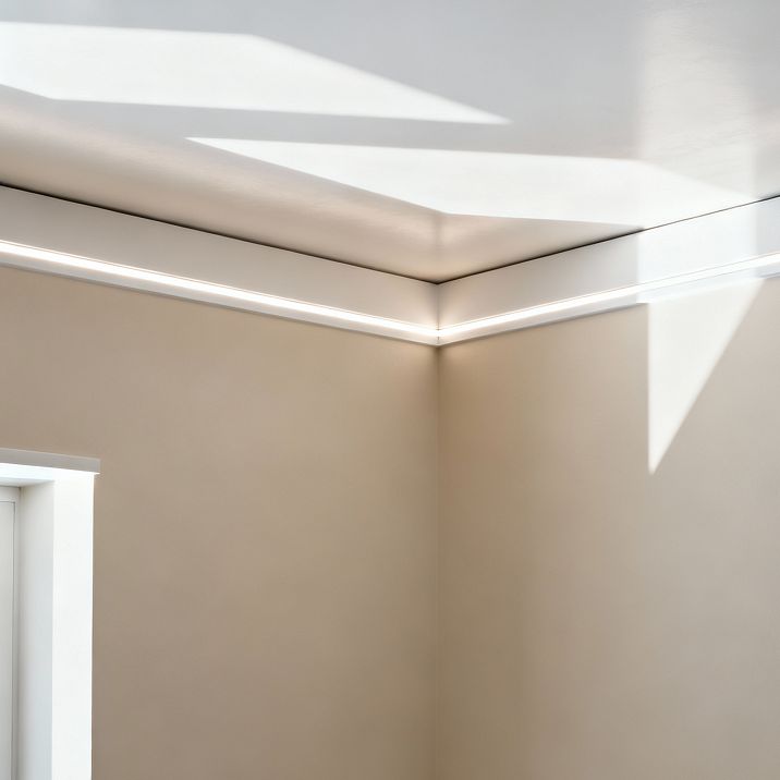 Ceiling skirting board for stretch ceiling — an affordable option for most projects. Lightweight, inexpensive, and easy to install. Perfect for decorative backlighting with low power. Duro-polymer — for powerful backlighting, wide profiles, and premium interiors.