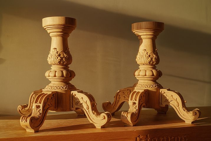 Light-colored beech wood with distinctive texture is ideal for creating pedestals in Scandinavian style, especially popular in Petersburg. The unique combination of strength and elasticity allows creating complex curved structures.