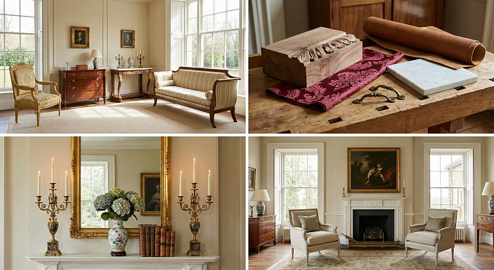 Французский классицизм (стиль Людовика XVI) элегантен и сдержан. Английский классицизм (стиль Адама, Хэплуайт, Шератон) ещё строже, с акцентом на пропорции и качество столярной работы, а не на декор.