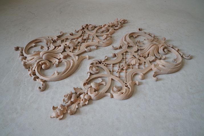 Patina technique allows creating an effect of elegantly aged surfaces. A base coat of paint is applied in light tones, then recesses and relief elements are highlighted with dark paint or glaze. Excess dark material is removed with a cloth or sponge to create a natural worn effect.